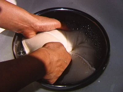 Wring the bag to remove excess liquid. Be careful not to remove too much liquid from the beans. Usually an indentation made by pressing a finger into the beans will hold its shape. If it crumbles, too much water has been removed.